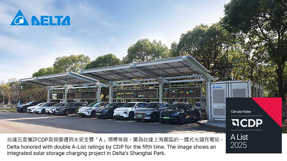 CDP(原碳揭露专案)公布 2025 年评监报告,台达在「气候变迁」(Climate Change)与「水安全」(Water Security)两大环境主题评监结果中,五度获得双「A」顶尖评级(A List)成绩,本年度全球共有超过 22,000家企业叁与CDP评监,仅有不到1%的企业获此殊荣肯定。台达整合气候变迁、水安全、生物多样性等多重环境议题进行管理,不但提升永续治理管理层级,亦积极推动范畴三减碳,携手价值链朝永续净零目标迈进。