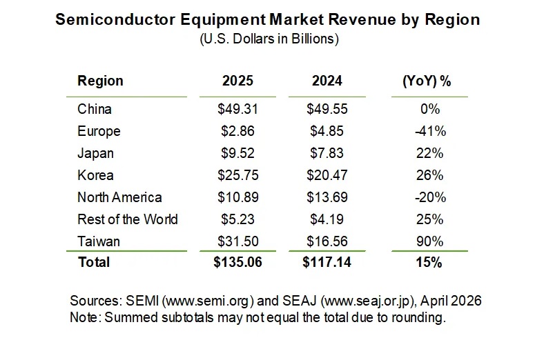 | 2025年全球半導體製造設備銷售額達1351億美元 |